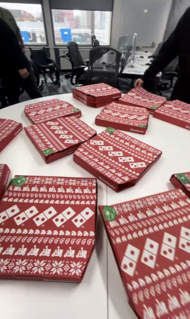 In the newsroom, an abundance of pizza has arrived!!