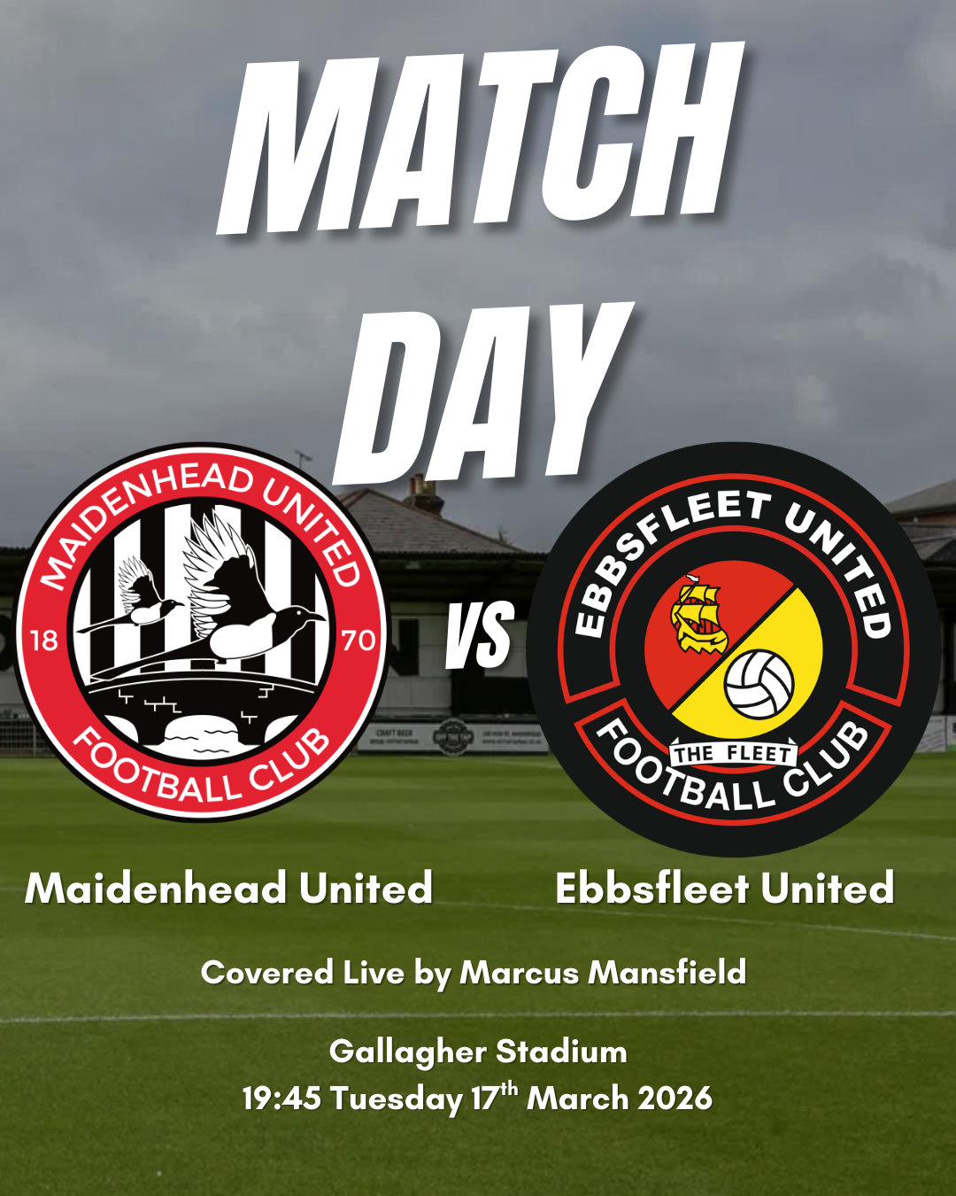 Current image: Matchday poster with details of the match between Maidenhead United vs Ebbsfleet United.
