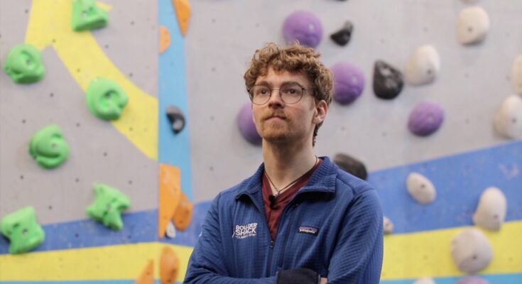 The high-level indoor boulderer trains and competes at Boulder Shack in Southampton, and he says the mental challenge of climbing is what keeps him hooked.