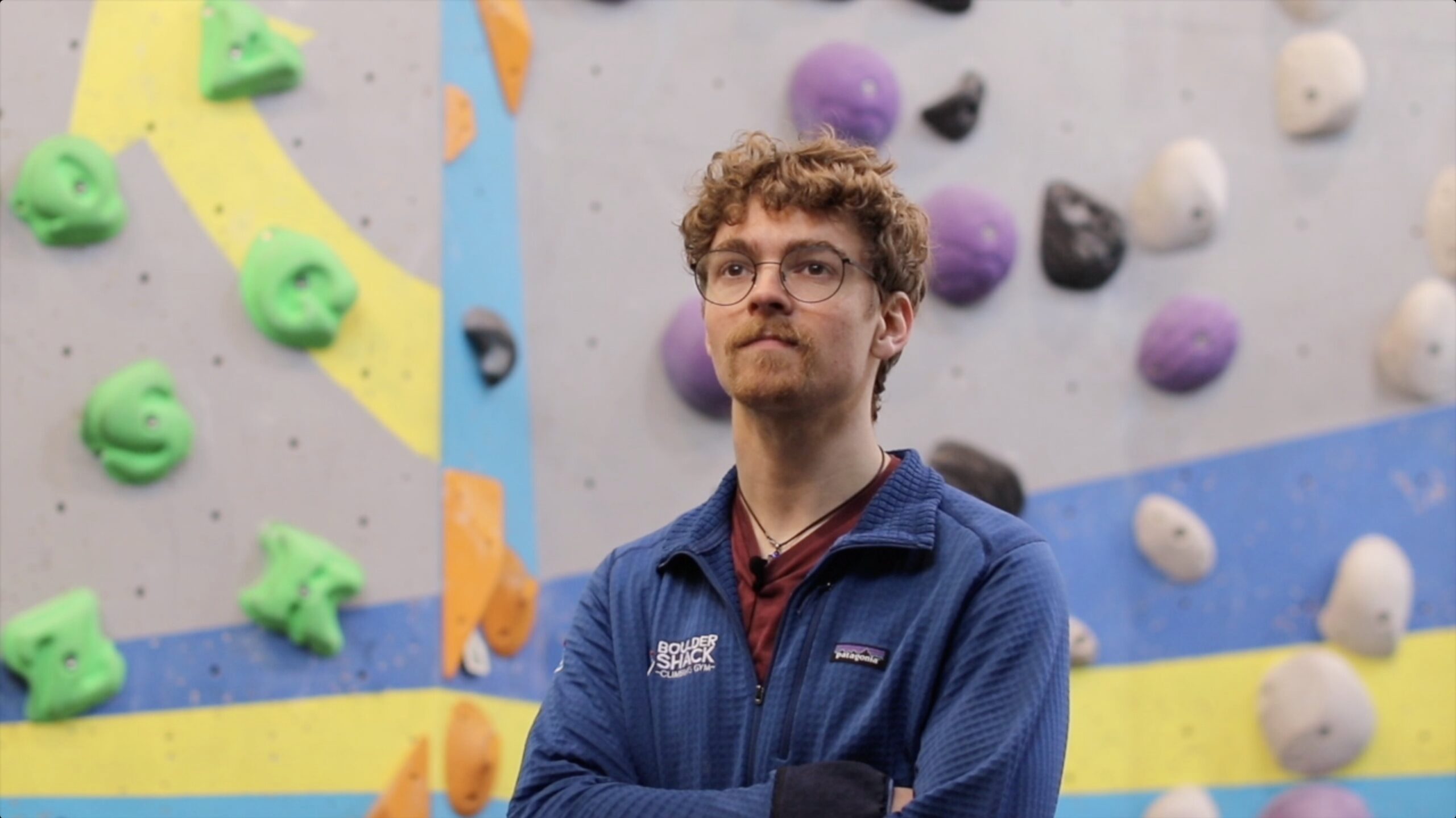 The high-level indoor boulderer trains and competes at Boulder Shack in Southampton, and he says the mental challenge of climbing is what keeps him hooked.