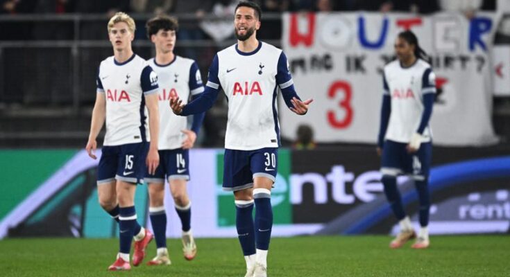 Spurs found themselves two goals down at the break due to goals coming from Rayan Cherki and Antoine Semenyo.